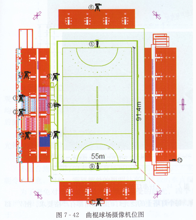 二.             曲棍球場攝像機位圖如圖7-42所示,該圖與表7-25配合使用。