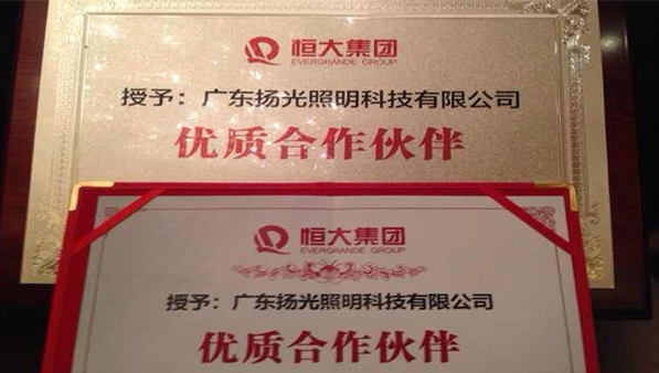 揚光照明榮獲恒大地產(chǎn)優(yōu)質(zhì)供應(yīng)商稱號