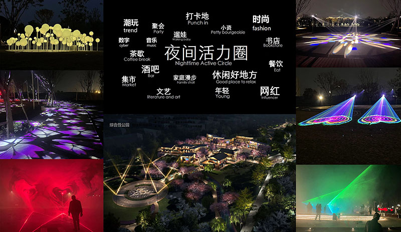 在方案設計過程中,我們首先從項目場地總體規劃的角度出發,深入了解各地塊的區域功能、定位,使燈光系統盡可能考慮到所有地塊內容,使其整體統一且獨具各自主題特色。我們特別注重于燈光環境對視覺生理的支持,用燈光創造可辨識的夜間環境;亮度、照度等量化指標的給出有堅實的理論基礎,并與實際相符合。同時利用燈光對景觀結構進行重組,使其成為感知環境特色的工具。整體布局上呈現多元、有活力的夜景形態,適應多種夜間活動的需要。